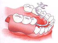 失った歯の周囲の歯に金属の留め金をつけて、取り外しの人工の歯を留めるため見た目が良くない。